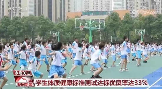 教育部相关负责人7月5日公布的最新数据显示,目前全国中小学体育与健康教育课程的开课率接近百分之百,学生每天校内体育锻炼时间超过了一小时,国家学生体质健康标准测试达标优良率达到了33%。