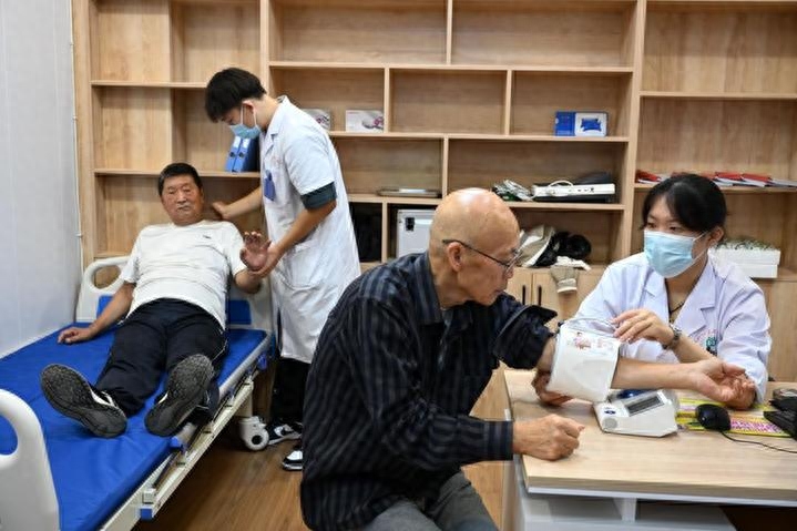 9月13日,老人在承德市碧园社区日间照料中心检查身体。