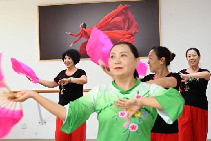 9月13日,老人在承德市碧园社区日间照料中心扭秧歌。
