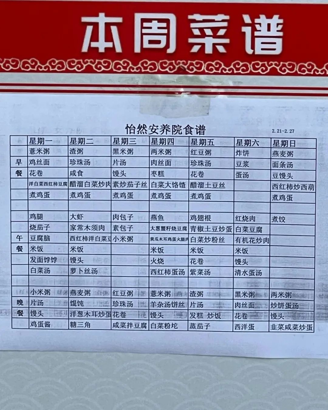 在饮食上,怡然非常尊重老人,他们想吃多少吃多少,从不会暗里给他们设限,院长和护理员吃的菜是一样的,顿顿都有肉,还会给老人加一道特制的肉菜。