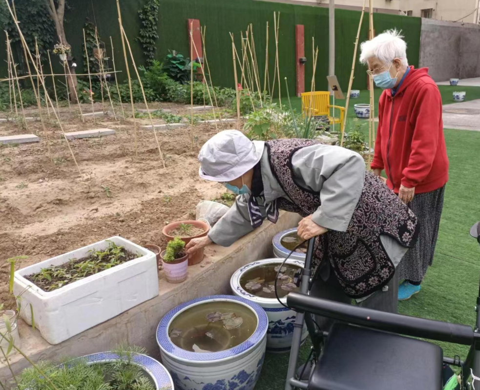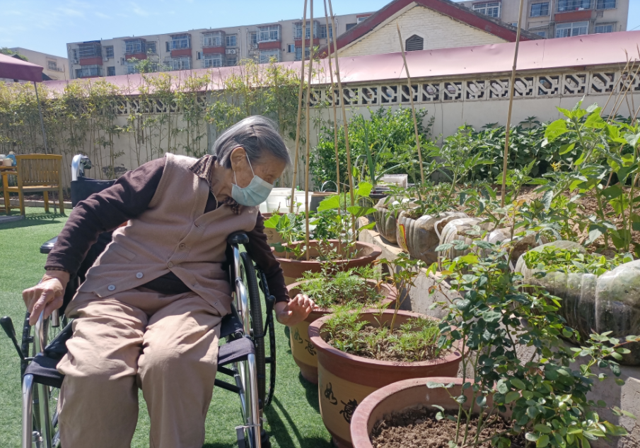 王前进说,许多老人都爱好养花种草,有的老人早年种过地,给了工作人员许多技术指导。在大家的努力下,“开心菜园”越长越好。目前,菜园里已经长出了西红柿、彩椒、生菜、瓠子、茄子、菊芋等七八种蔬菜,有的开了花,有的挂了果,一天一个样。随着夏天的到来,大家种下的睡莲、雏菊、牵牛花等也竞相开放,把养老院装点得漂漂亮亮。