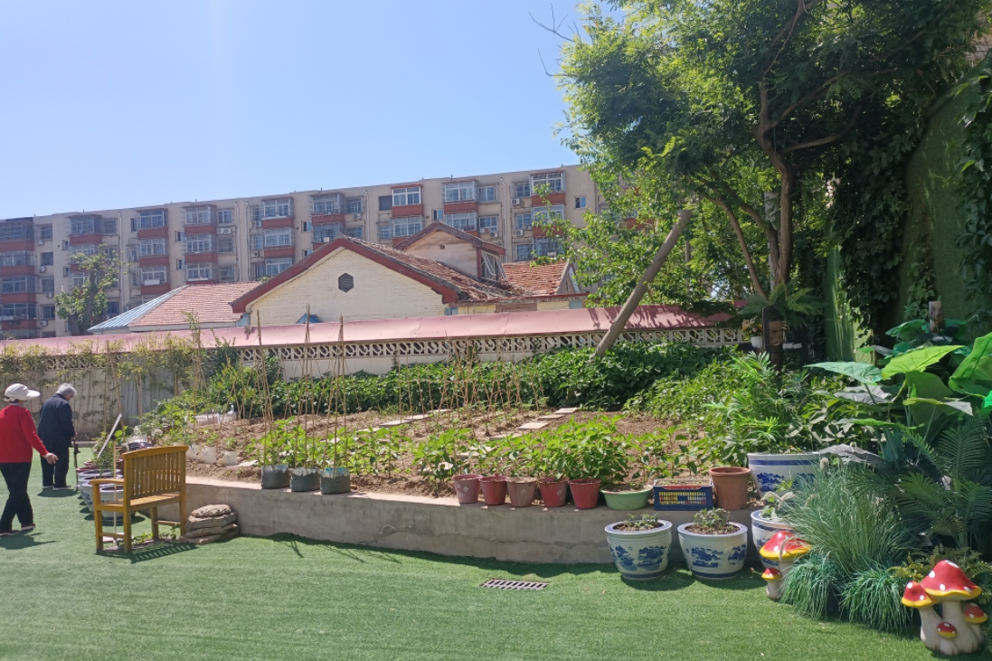彩椒开了花,西红柿挂了果,瓠子的藤蔓越爬越高……在通州区永顺镇诚和敬长者公馆,院内的“开心菜园”长势喜人。为缓解老人的焦虑情绪,工作人员在院内开辟了一块菜地,让整个院子绿意盎然。