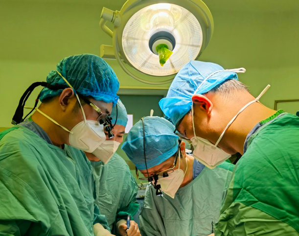 术中发现鸡蛋大小的肿瘤突出于肝脏表面,随时可能发生破裂出血,手术团队精细操作,配合密切,将肝肿瘤精准切除,手术历时两小时顺利完成。