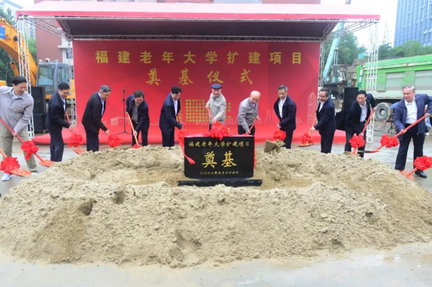 5月26日上午,福建老年大学扩建项目举行奠基仪式。福建省政协原主席、福建老年大学原校长游德馨,中共福建省委原副书记、福建老年大学名誉校长黄瑞霖,福建省政协原副主席、福建老年大学校长杨根生,福建省委组织部副部长、老干部局局长、福建老年大学第一副校长陈炎标,福建建工集团党委副书记、总经理刘晓群,福建省招标采购集团党委委员、副总经理程立平,福建省委老干部局副局长、福建老年大学常务副校长张国茂,福建老年大学副校长李福生等出席仪式。