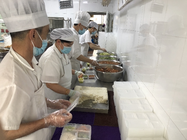 一天上午10时30分,食堂突然接到镇里的电话,要紧急加烧数百份当天中午的盒饭。此时离“交货”时间只有一小时左右了,张陆妹和厨师长迅速作动员,大家齐心协力,终于抢在11时30分前,把盒饭赶制了出来。像这样的“快速反应”任务,食堂接到过好几次,次次都圆满完成。