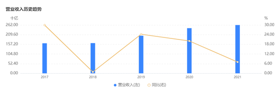近年来,泰康保险业绩表现不错。其中,营业收入自2017年的1626.01亿元增至2021年的2619.33亿元,在行业中排名第11位;净利润从2017年的113.76亿元增至2021年的246.81亿元。