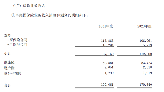 寿险是泰康保险主要营收险种。2021年泰康保险寿险收入1271.6亿元,远超健康险、财产险、意外伤害险的总收入。