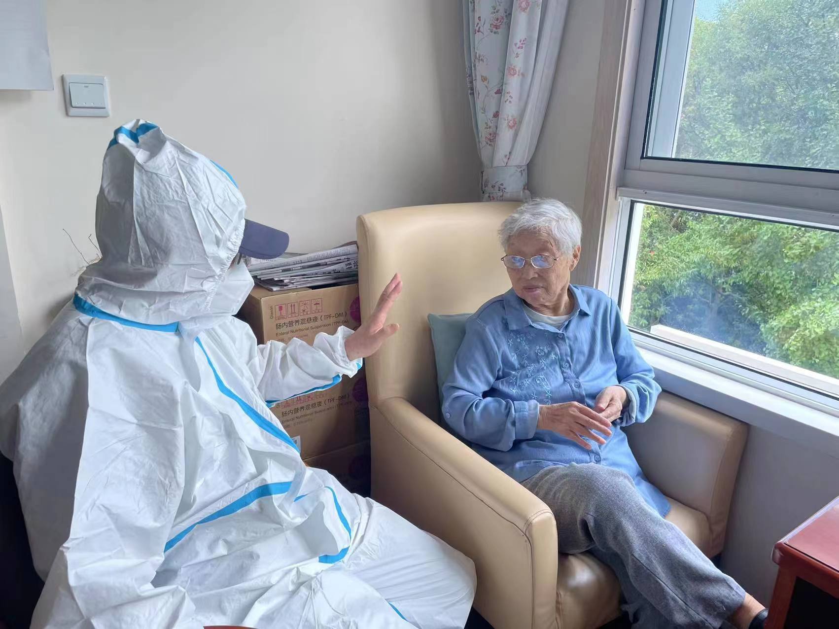 不必隔着一道厚厚铁门,也无需保持五米距离,青浦区中福会养老院内,年届九旬的刘惠林老人,终于可以与百天未见的女儿说些“体己话”了。本月起,上海调整养老机构出入管理政策,家属探视采取预约方式。只要满足健康绿码、24小时内核酸检测阴性证明等相关要求,家属便可有序进入养老机构探视。