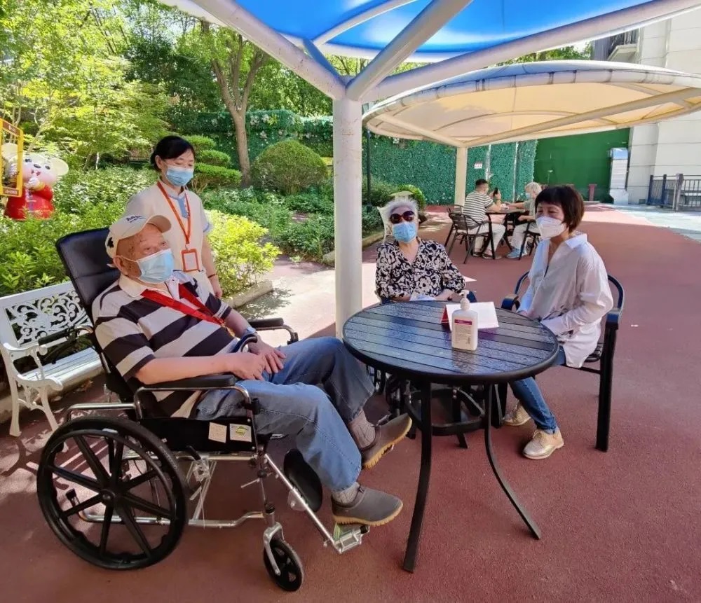 7月1日起,长宁区各养老机构(含长者照护之家)稳妥有序调整人员进出管理等疫情防控措施,家属可预约探视。今天(7月2日)正值周末,不少老人家属就“第一时间”来到养老机构,与许久未见的亲人“团聚”。