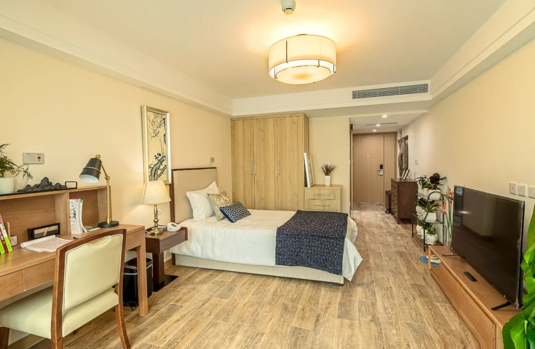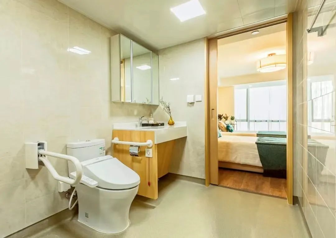 配置新风系统、隔音墙板,为长者提供净水设施、标配全套适老家具、智能卫浴系统。