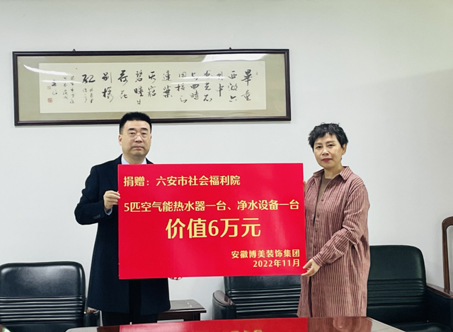 正当大家为这事犯愁时,安徽博美装饰集团董事长陈军得知了这一情况,主动联系了老年公寓,要为住在这里的老人捐赠一台空气能热水器。“看着天气冷了,我们企业一直想着给社会上的老人们送上温暖。”陈军说,老年公寓的老人们需要社会的关心和关怀,哪怕是陪着他们唠唠嗑。而企业捐赠热水器是考虑到老人生活实际,更是让老人们在冬季洗澡不再发愁,真心地将温暖送到老人身边。
