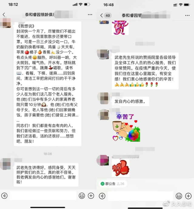 以上内容摘自泰和·睿园养老社区的银龄俱乐部的微信群,感谢这位长者对睿园的信任,泰和·睿园将继续以竭己之力为长者提供无忧的养老生活。