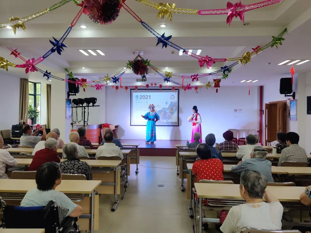 金山区社会福利院十分注重培养住养长者的兴趣爱好,开设有戏曲、绘画、书法、拳操、音乐等多个课程小组,定期邀请社会团体来院开展戏曲表演、文艺汇演、电影展播等活动。在传统佳节期间,精心设计各类传统节日庆祝活动,丰富住养长者精神文化生活。
