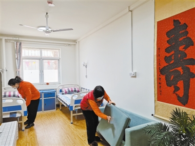 近日,南开区首家街道级嵌入式社区养老服务实体——王顶堤街嵌入式社区综合养老照料服务中心正式投入运营。该中心位于南开区迎水西里社区内。通过新模式的探索,中心可以提供在社工介入下的短期托老、无围墙订单式照料护理服务、老年人康养、老年人助餐等一系列的养老服务。图为中心工作人员整理房间迎接老人们入住。