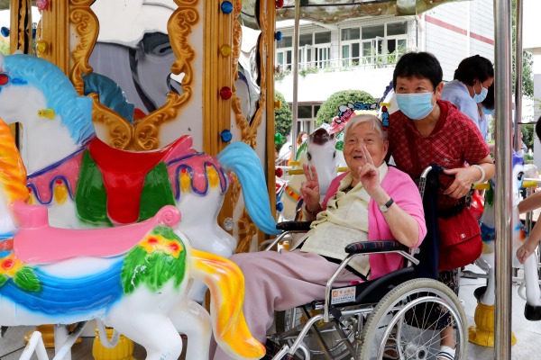 今年重阳节,他们又将旋转木马、小火车搬进了养老院,让老人们重温“童心”。