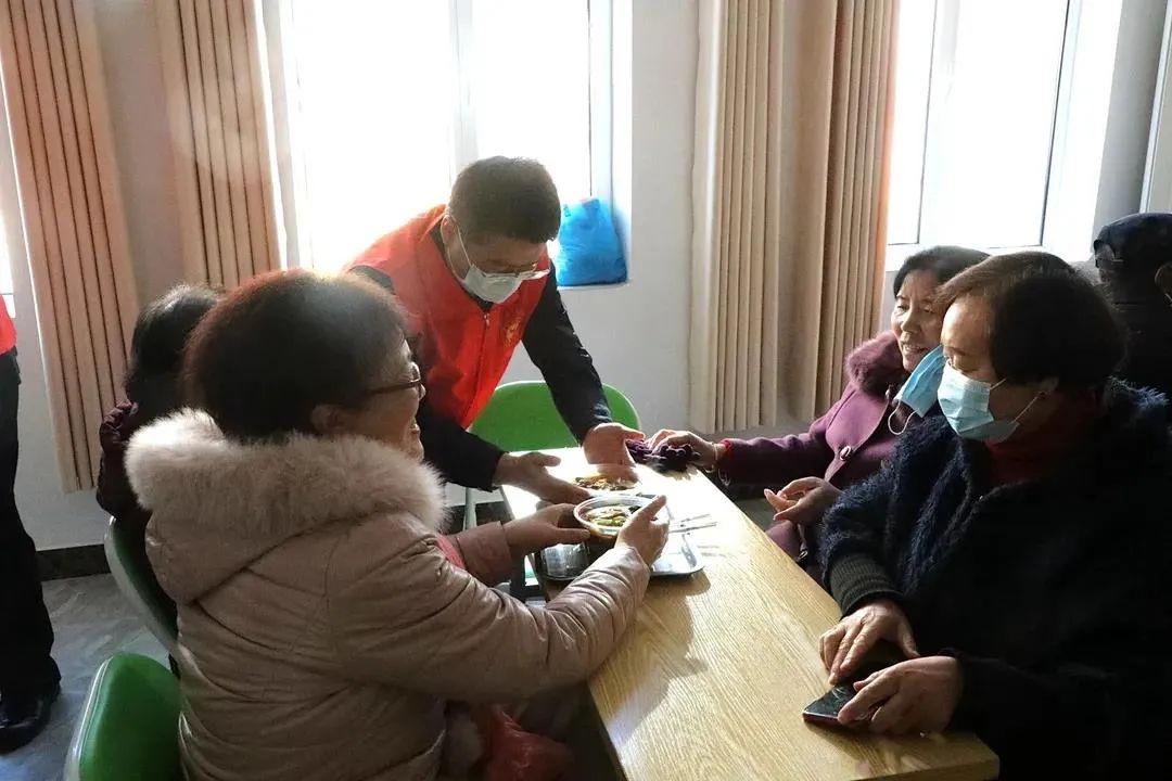在金川区桂林路街道综合养老服务中心,志愿者和工作人员将一碗碗热腾腾、香喷喷的粉汤端到老人们的面前,暖心的与老人们进行了交流。