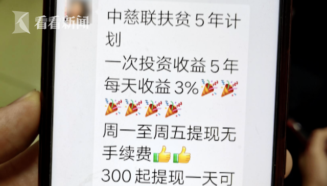 原来,最近她在网上认识了一位名叫“红艳姐姐”的网友,该网友通过聊天,诱骗杨阿姨对“中国慈善联合会扶贫5年计划”进行投资,并声称一次投资收益5年,每天收益3%。面对如此高额的投资回报,杨阿姨心动不已,迫不及待地要给“红艳姐姐”投资9万元。