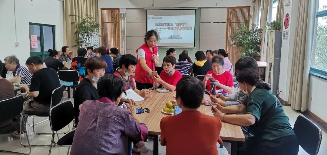 在全区范围内选择77个养老服务机构及场所设立“长者智能技术运用能力提升”服务点,由志愿者通过“面对面、手把手”方式,为老人开展智能手机运用指导培训,解决老人在运用新兴技术时遇到的困难和问题,帮助老年人跨越“数字鸿沟”。截至目前,77个服务点共有1200余名志愿者开展培训和帮办服务,累计服务50000余人次。