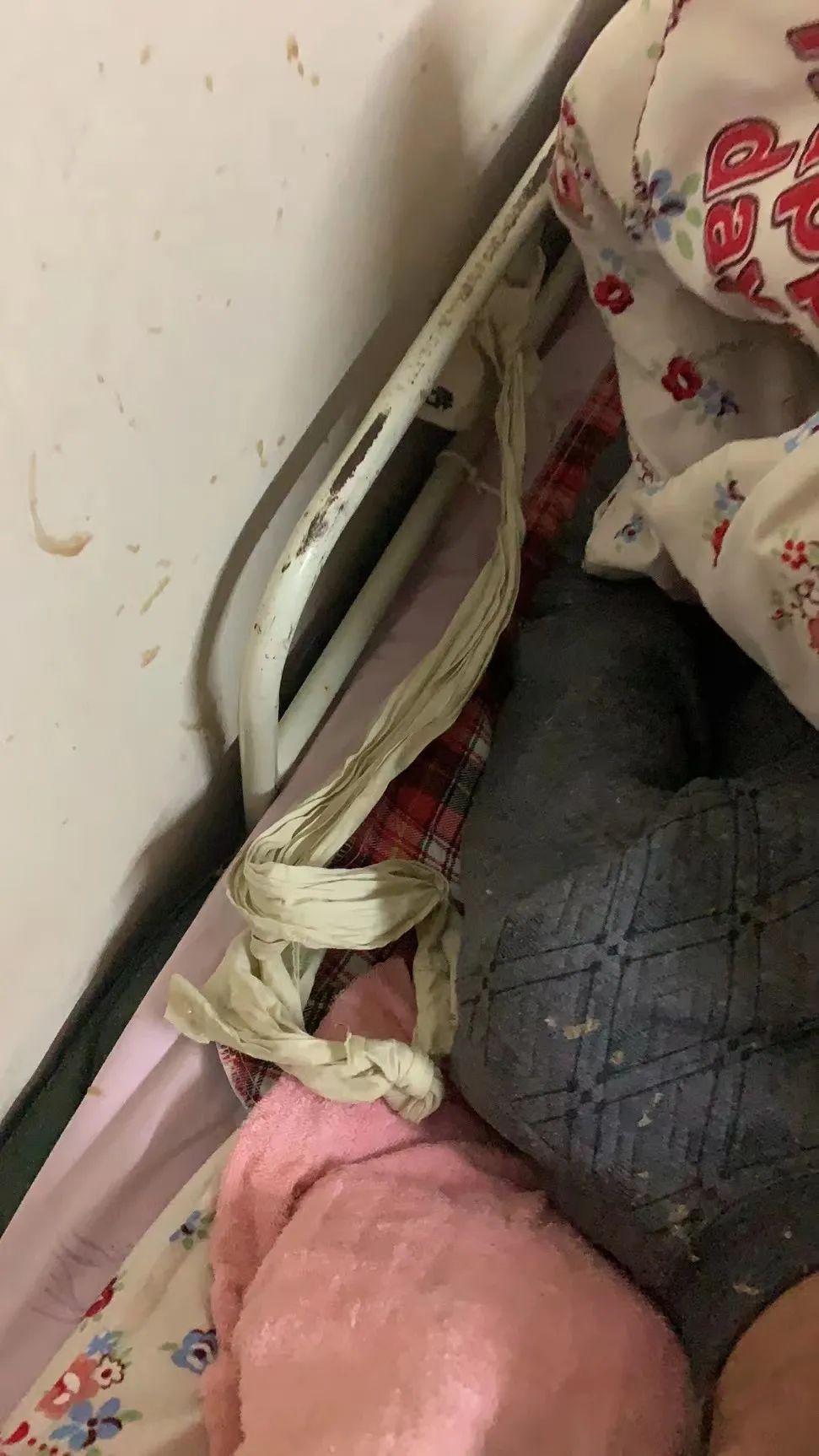 松江华阳敬老院疑遭捆绑老人床头的布条