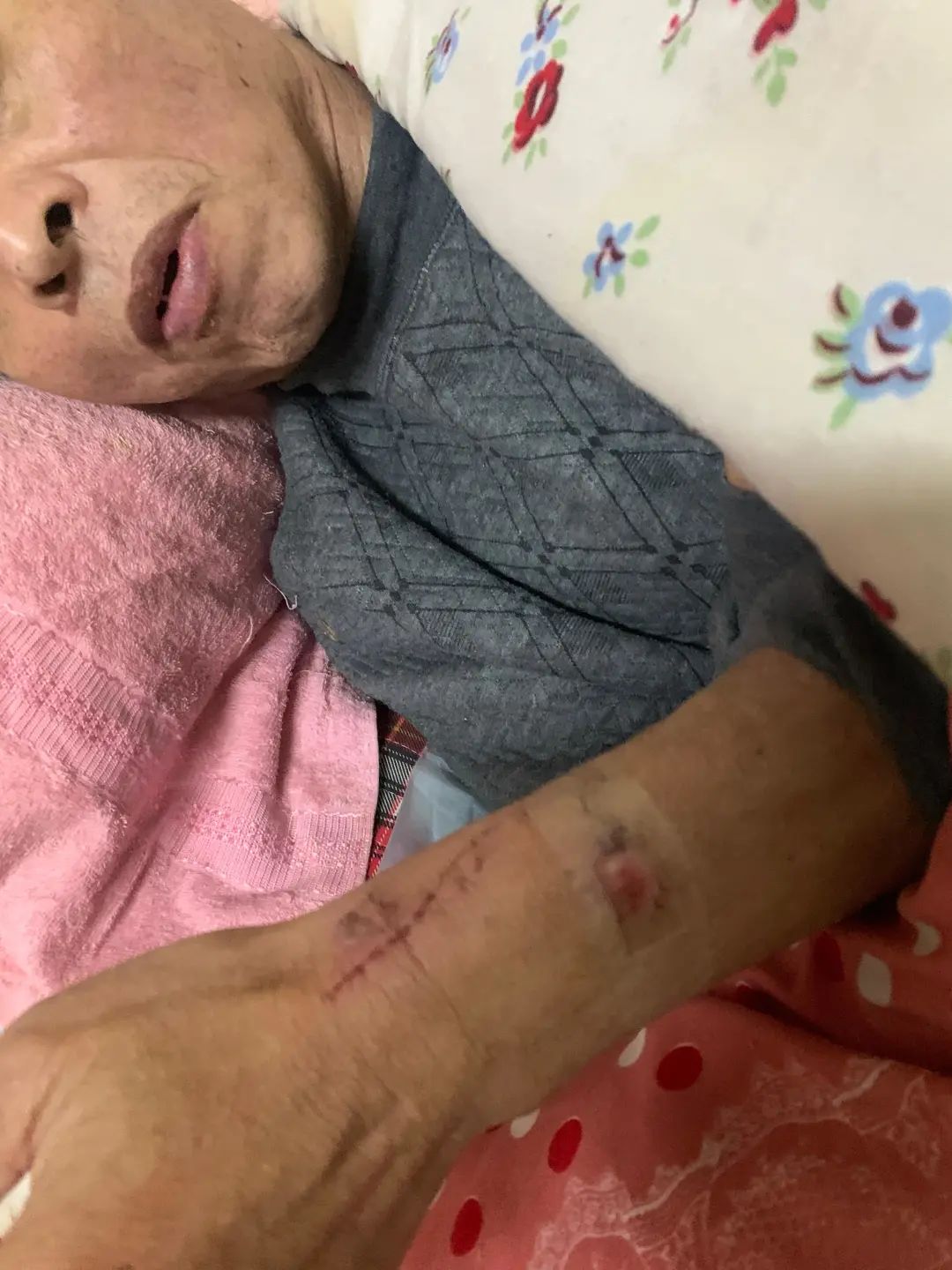 李兴告诉记者,当时他问话,父亲没有回应,只是手一直捂着手腕,“我才注意到父亲手腕处从里到外全是伤,有新伤,有旧伤,还有一处贴着创可贴,撕开创可贴,我发现肉都溃烂了。”