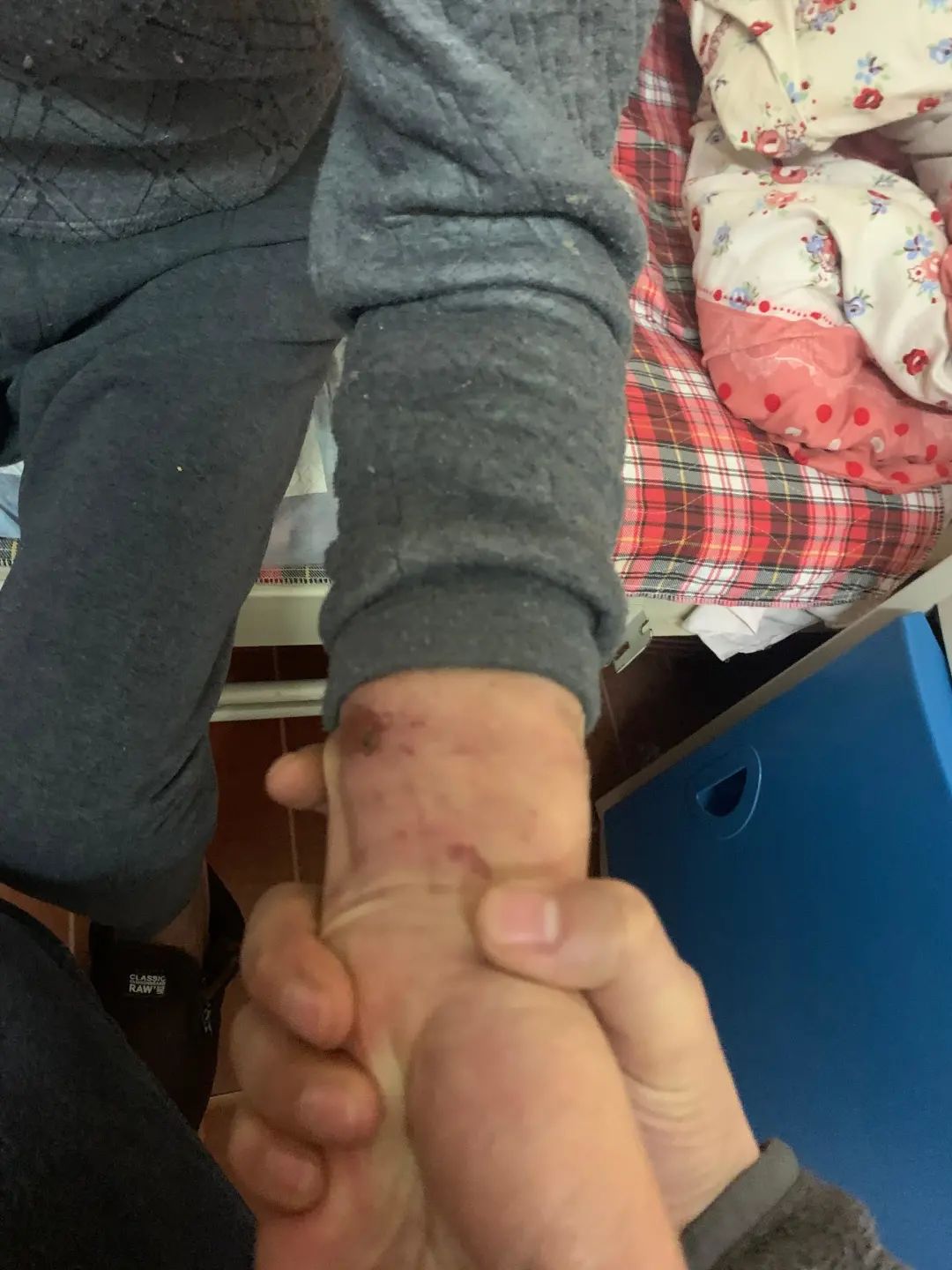 疑遭捆绑老人手腕处的伤痕