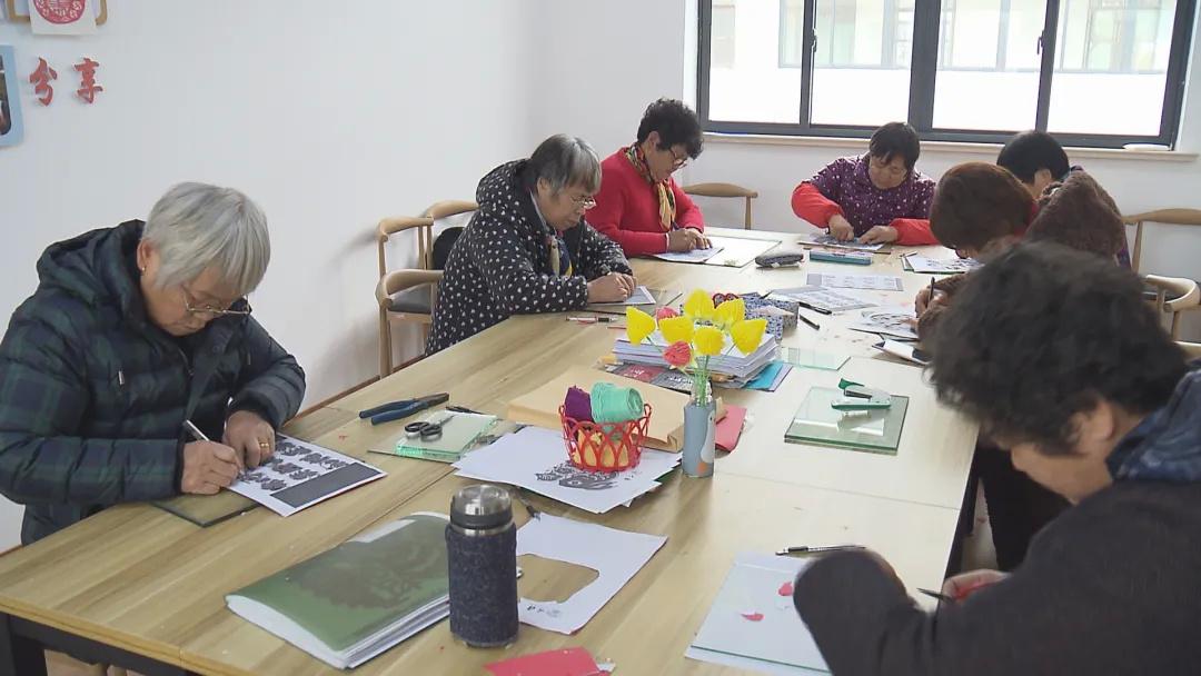 在金山卫镇星火村综合为老服务中心的手工室内,朱琴芳正拿着美工刀,认真地创作着剪纸画。今年69岁的朱琴芳是金山卫镇星火村13组的村民。自该综合为老服务中心试运营以来,朱琴芳每天都会和朋友们相约于此。