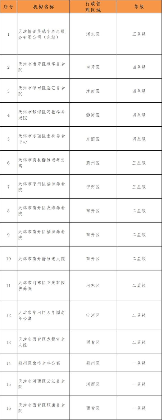 从天津市民政局网站获悉,2021年,市民政局委托第三方评估机构对申请养老机构等级划分与评定的养老机构进行评估,申报50家,实际评估39家,达标16家(五星级1家,四星级4家,三星级2家,二星级6家,一星级3家),未通过23家。