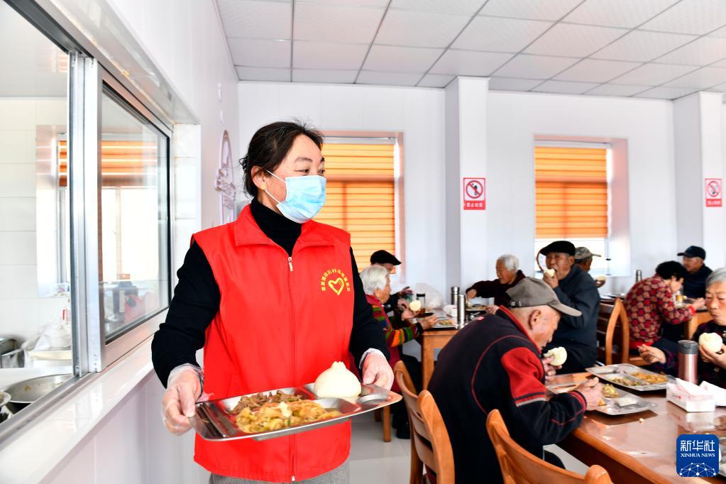 3月4日,在乳山市南黄镇院后村暖心食堂,老人们在吃午餐。2021年以来,山东省乳山市运用农村信用体系建设,将“精致农家”“孝老爱亲”“热心公益”等方面获得的荣誉纳入信用记录,探索“信用+暖心食堂”互助养老模式,解决65岁以上农村老人“一餐热饭”的问题。目前,乳山市已建成“信用+暖心食堂”100余个。新华社记者 郭绪雷 摄