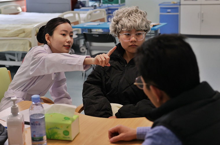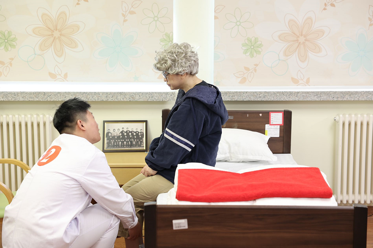 模特扮演成失能老人,躺在床上,选手小心翼翼地为老年人翻身、叩背促进排痰:把不能动弹的老人搬到轮椅上,辅助他们进食;为老人测量血压……在比赛现场,选手们通过模拟真实情境下的现场操作,展示高等职业院校学生为老年人开展生活照料、基础护理、康复护理、心理护理、处理紧急突发事件等养老护理的实践应用能力和职业素养。
