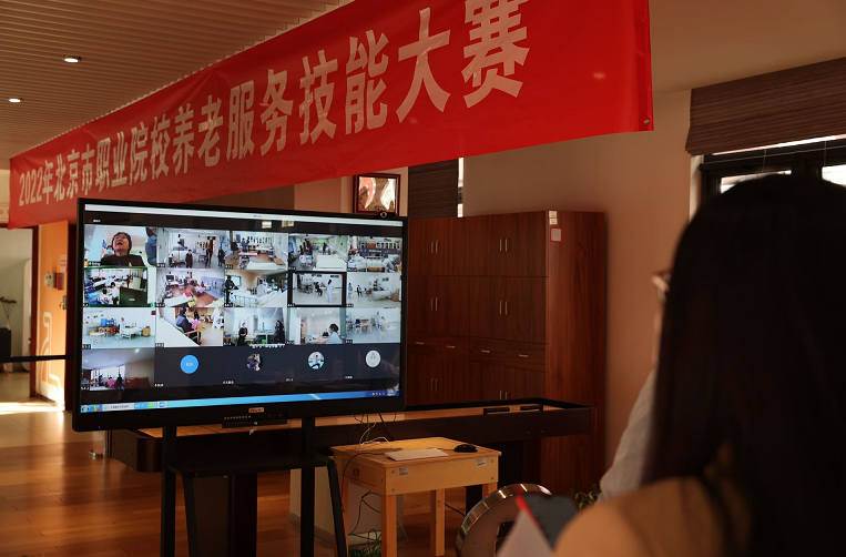 今天上午,“2022年北京市职业院校养老服务技能大赛”在北京劳动保障职业学院南校区开赛。来自北京劳动保障职业学院、北京青年政治学院、北京社会管理学院、汇佳职业学院4所院校的8支代表队集结云端,展示新时代养老护理服务技能。