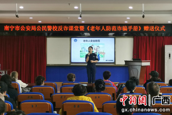 为有效预防和减少侵害老年人的诈骗案件,守好老年朋友的“钱袋子”。5月19日,南宁市公安局公民警校于南宁市老年人活动中心举办反诈课堂暨《老年人防范诈骗手册》赠送仪式。