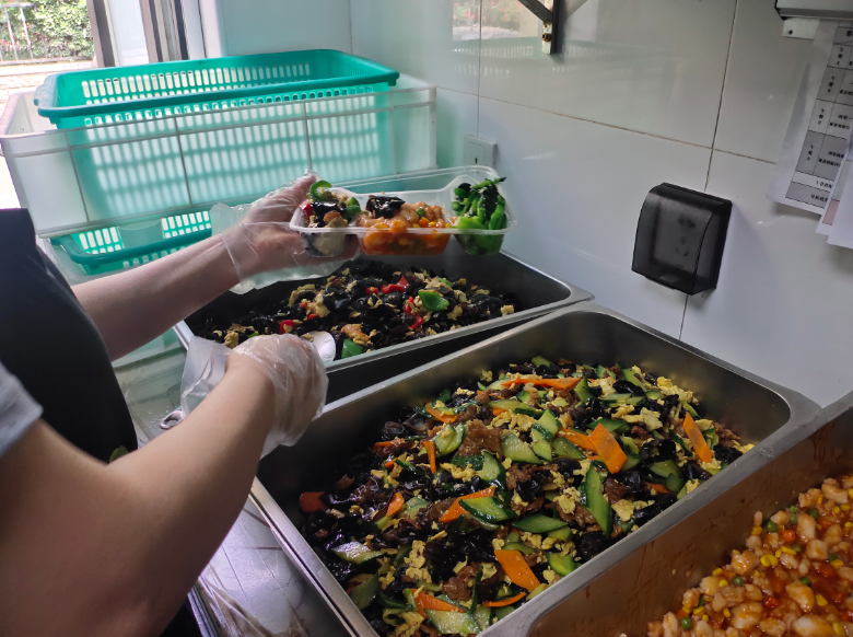 “目前每日的订餐量在100份左右,选择送餐上门的较多。”食堂负责人宋阳介绍,所有员工持48小时内核酸检测阴性证明上岗,每一份老年餐,工作人员都会严格按照防疫要求打包、密封好后装进保温袋,保证老人吃上安心餐、热乎饭。