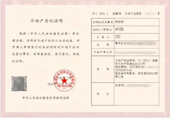 不动产居住权证封面