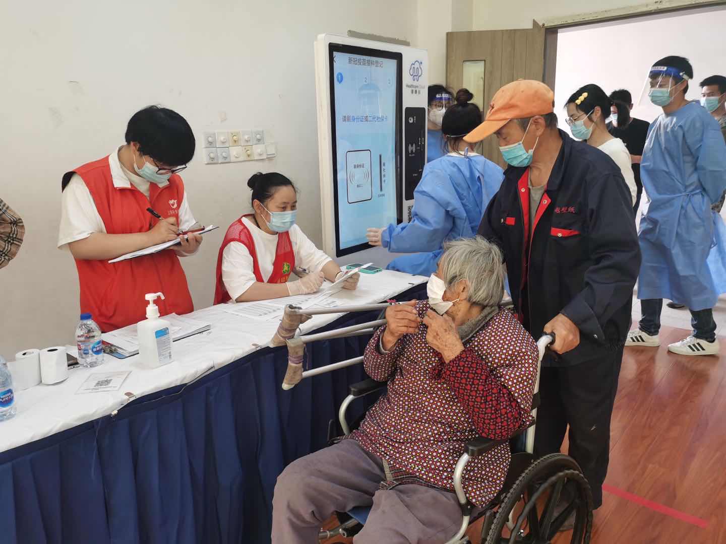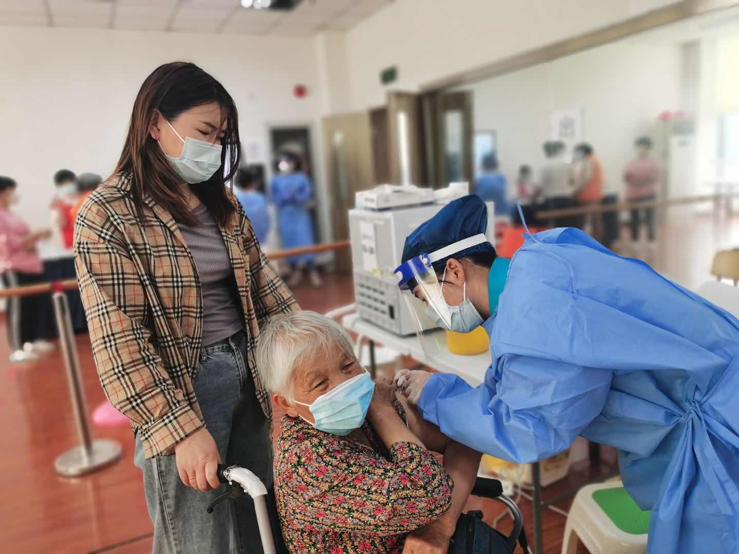 目前在漕泾镇,90周岁以上老人接种新冠疫苗的不在少数。阮巷村2组的莫阿婆今年92岁了,近日,在其儿子尹先生的陪同下,推着轮椅在漕泾镇文化体育服务中心打了第一针新冠疫苗。尹先生说:“原来想着老人岁数都这么大了也不外出没有必要打,但经过这轮疫情觉得还是有必要的,家里还有其他人进出的,主要还是咨询过医生说老人身体条件允许打,所以在征求老人同意后就过来了,村里专门安排了车子上门接送的。”村干部告诉记者,每次接种疫苗,村里都会安排大巴士接送,对行动不便到村里都有困难的老人就安排小轿车进行一对一的接送服务。