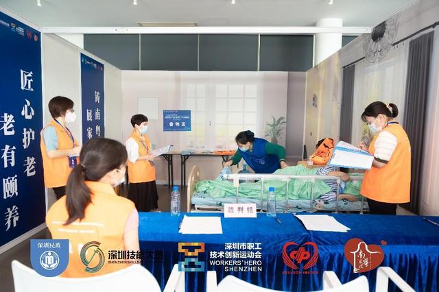 6月12日,由深圳市民政局、深圳市人力资源和社会保障局、深圳市总工会联合主办的“深圳市第十二届职工技术创新运动会暨2022年深圳技能大赛——养老护理员职业技能竞赛”决赛在深圳人才公园求贤阁举行,55名养老护理员同场竞技。