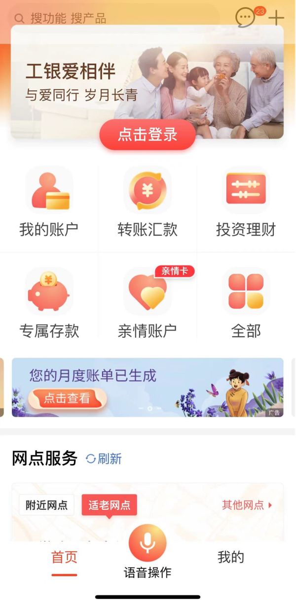 近年来,多家银行在适老服务方面也积极探索,推出适老版、关怀版模式的手机银行系统。以工行APP为例,适老版相较于标准版,字体更大,功能和界面更加简洁实用,除基础的账户查询、转账汇款、投资理财等必要模块外没有过多复杂选项,极大简化了操作难度,提高了使用便利性,且伴有语音操作功能,老年人客户无需输入文字,通过语音就可以办理业务,并配有语音播报。