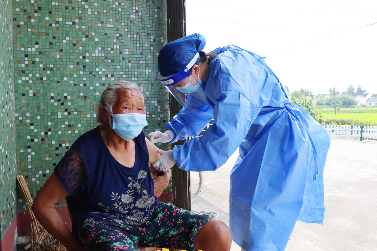 “大热天的,专程来给我们这些腿脚不方便的老人打疫苗,还有医生帮忙看病历,告诉我们可不可以打,真的太贴心了。”近日,在沪郊朱泾镇牡丹村三浜2组,96岁的何阿婆在自家埭头上就顺利完成了第一针新冠疫苗接种,暖心的服务让何阿婆和其家人都连赞真方便。村民的满意得益于朱泾镇的主动靠前服务,7月4日以来,在区卫建委的支持下,朱泾镇在设置固定疫苗接种点和流动接种点的基础上,推进送苗进埭头,为想要接种,但行动不便的村民带来了极大的便捷。