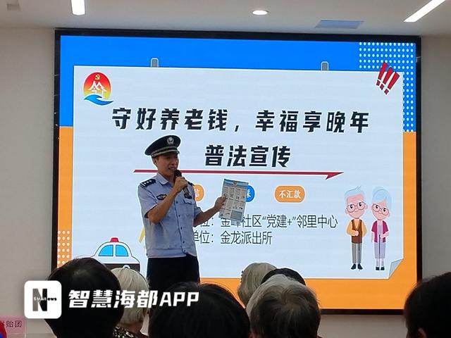为增强广大群众防范意识,10月11日下午,泉州鲤城区公安分局金龙派出所联合相关部门走进金峰社区开展“养老防诈”进社区活动,筑起知法、守法、懂法的城墙,拉起老人识诈、防诈、反诈的警戒线。
