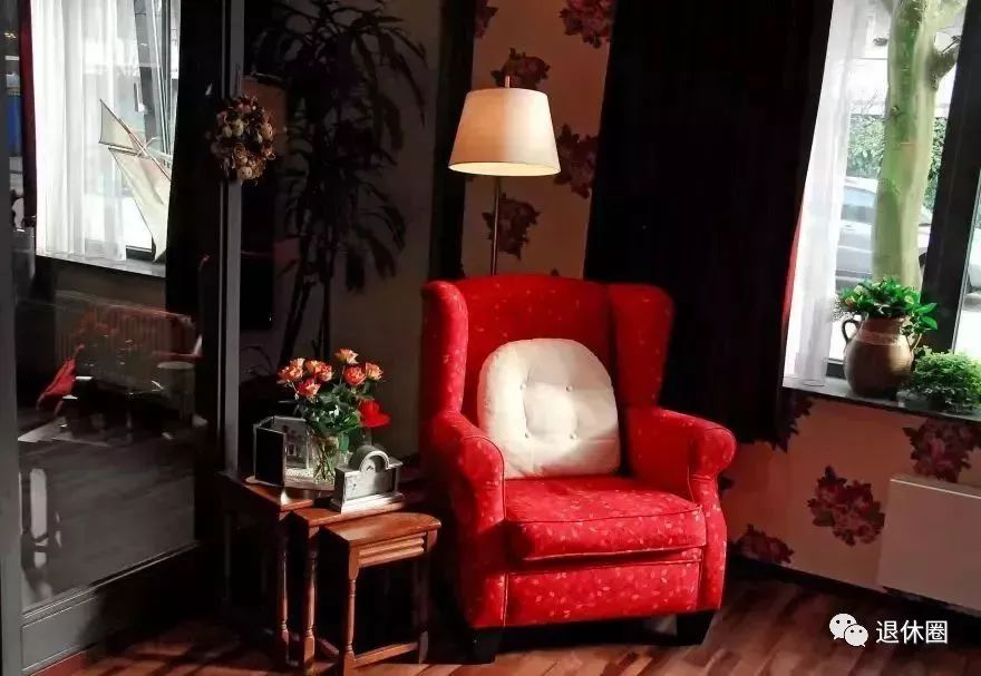 挂在墙上的黑胶唱片,古典花纹的桌布和座椅,甚至连窗帘的色调与装饰,都尽量去还原那个时代,让老人的内心更加安定。