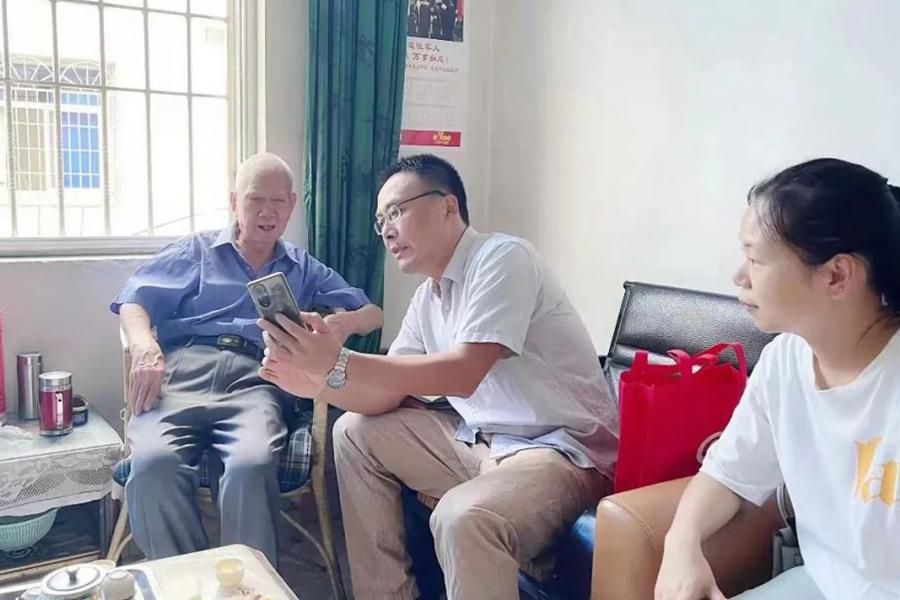 龙岩市社保中心工作人员上门为退休职工进行人脸识别认证。龙岩市人社局供图