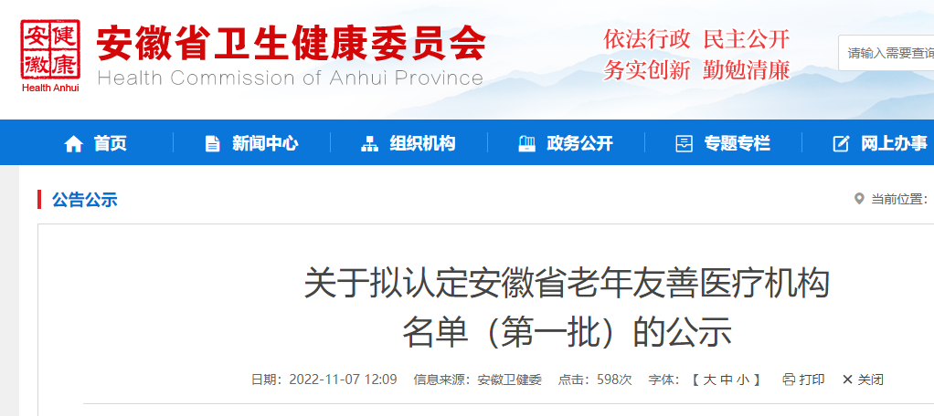 据安徽省卫健委网11月7日消息,安徽省卫生健康委员会、省中医药管理局发布公示: