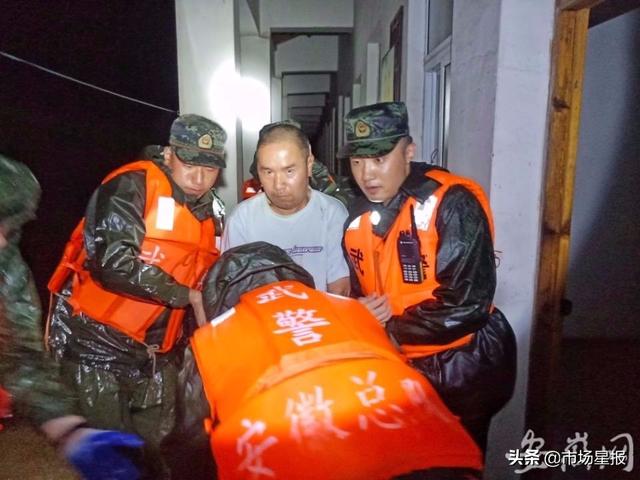 7月18日晚7点,在位于芜湖无为市的武警安徽总队训练基地抗洪官兵驻扎点附近,当地刘渡镇敬老院因洪水漫涨被淹,院内19名高龄孤寡老人被困,其中4人身患残疾、行动不便,急待救援。