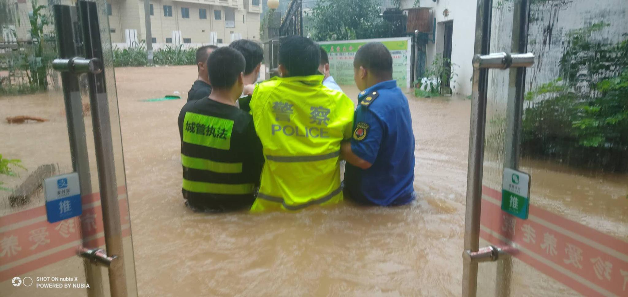 “我们一共有2艘橡皮艇,一艘橡皮艇能载3到4人,往返七八趟趟将老人全部转移到附近的酒店。”庄多说,此外,救援人员还推着冰柜,扛着大米、电脑主机等物资,蹚着洪水向外走。