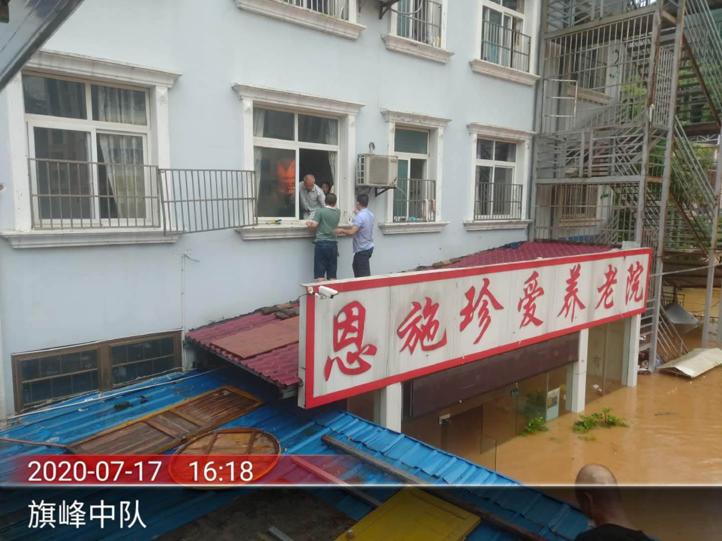 据珍爱养老院院长张传梅回忆,养老院的地势比较低,17日14时许,她看到洪水涌进养老院的停车场,赶紧叫老人们上楼躲避,“水非常急,非常快。老人到二楼后,我们还没来得及转移物资,洪水便已漫过围墙冲入屋内。”