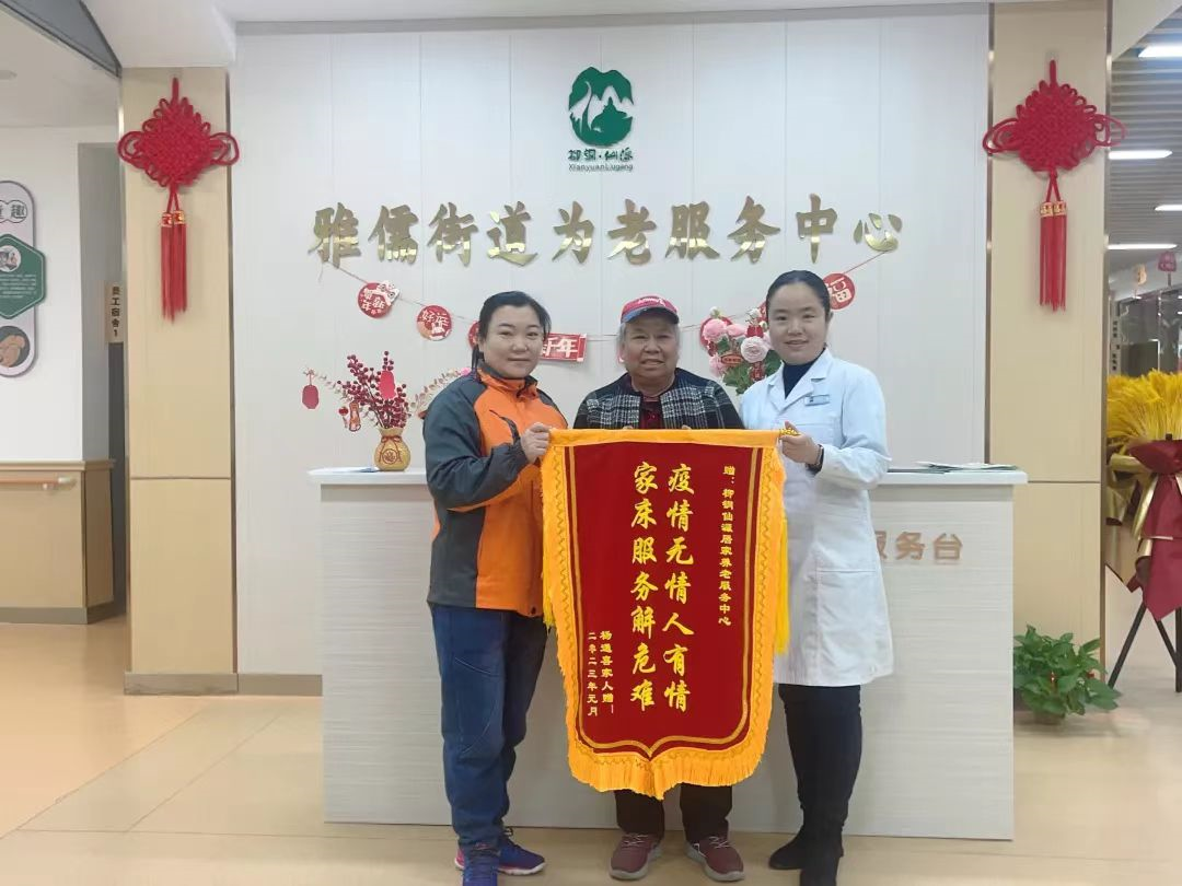 近日,79岁的杨爷爷委托家人给雅儒街道为老服务中心送来一面锦旗,感谢中心在开展居家上门服务中对他的悉心照顾。