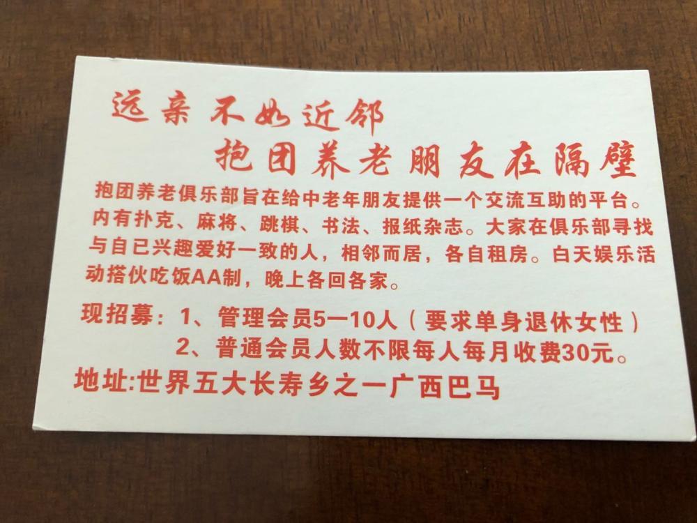 李阿姨印过的抱团养老名片