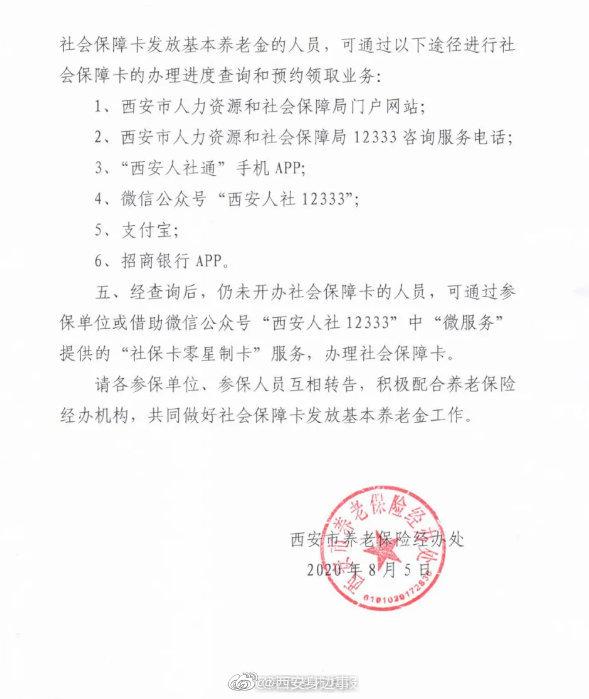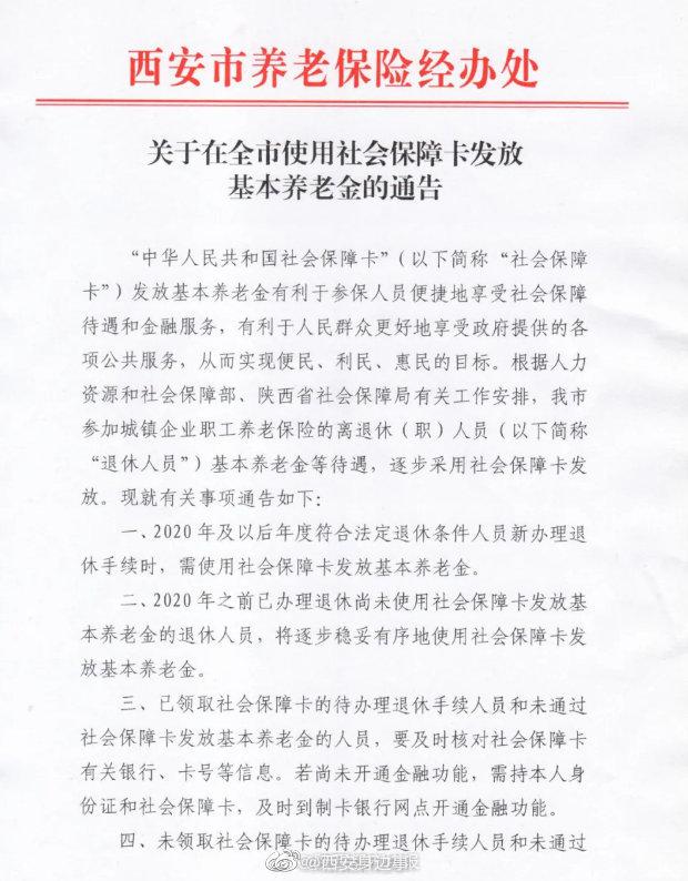 西安市养老保险经办处发布《关于在全市使用社会保障卡发放基本养老金的通告》