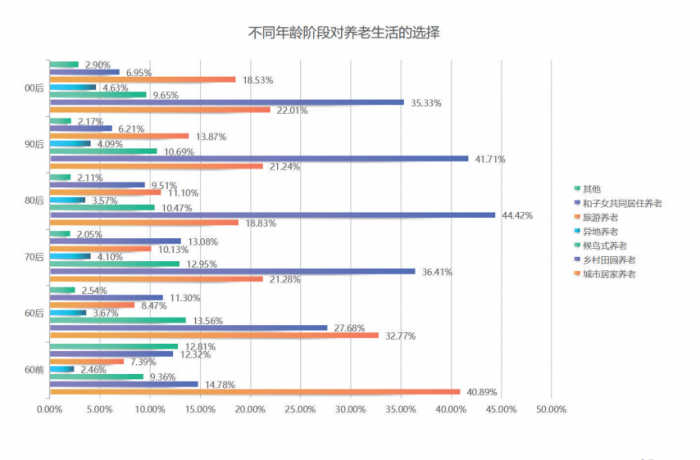 调查发现,不同年龄阶段人群对于养老生活方式的偏好有所不同。