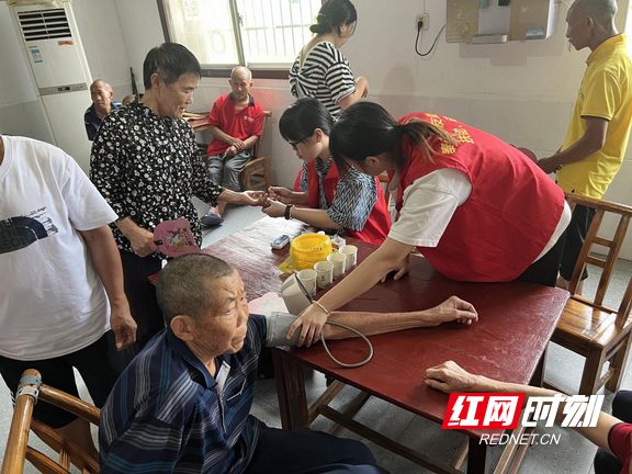 医护人员为老人免费测量血压。