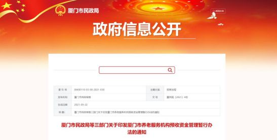 政策名称:《厦门市养老服务机构预收资金管理暂行办法》